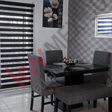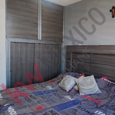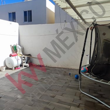 Fraccionamiento privado con acceso controlado, cámaras de seguridad en todo el fraccionamiento De dos plantas con tres recamaras, sala comedor, cocina , un baño y medio, patio, cochera para dos vehículos. Equipamiento, Muebles de Baño, boiler, tinaco, tanque estacionario, cocina y closet, Dos pérgolas una en la cochera y otra instalada en el patio.