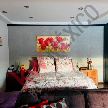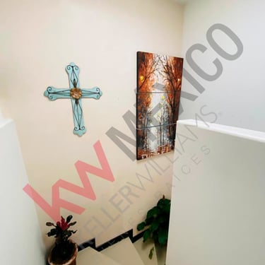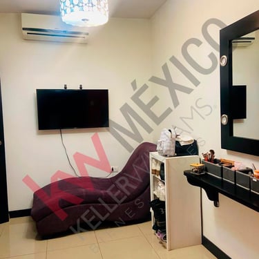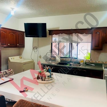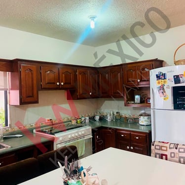 Cochera para tres vehículos, barandal electrico Equipamiento; Cocina, estufa, Lavadora de trastes, Persianas, dos aires, acabados de madera de encino, Muebles de Baño