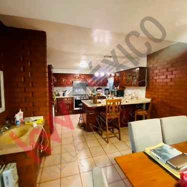 Casa habitación muy amplia de una sola planta con tres recamaras, sala comedor, estancia, dos baños y medio.