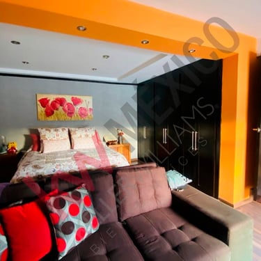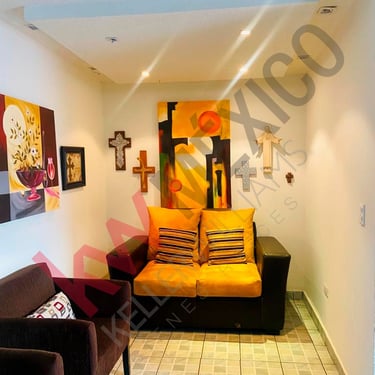 Departamento en la parte de atrás con acceso independiente , de dos plantas , con dos recamaras , cocina, sala, baño con closet vestidor. patio compartido con asador, area de fregadero, fuente de decoración.
