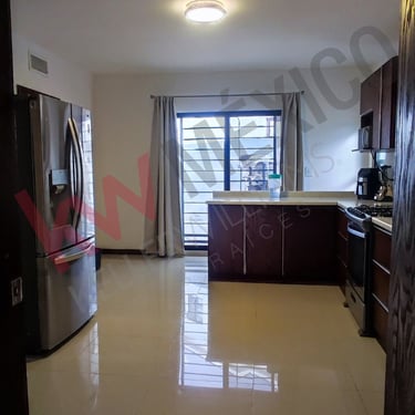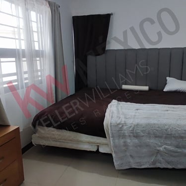 Casa habitación que se encuentra en una privada con acceso controlado, lo que le brinda seguridad y tranquilidad. Tiene cuatro recámaras, una de ellas en la planta baja, ideal para personas mayores o con movilidad reducida. También cuenta con sala, comedor, cocina, tres baños y medio, estancia, terraza, cochera para tres autos, patio, pasillo de servicio y jardín. Está equipada con hidroneumático, aire acondicionado, cisterna de 2,800 litros, vidrio templado en la escalera, portón eléctrico, cámaras de seguridad, tanque estacionario, persianas, rejas en todas las ventanas y candiles