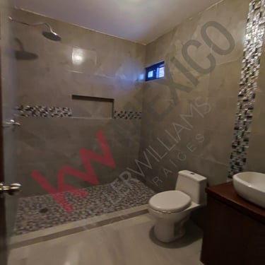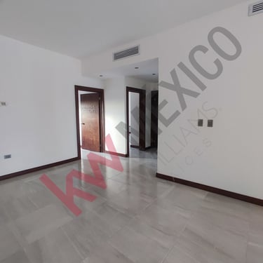 3 recámaras, (Estancia amplia, 2 recámaras secundarias con baño compartido y 1 recámara principal con vestidor, baño y office space,)