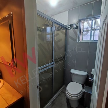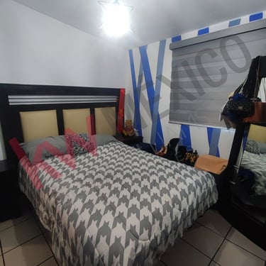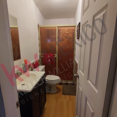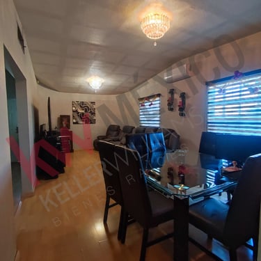 Casa de un piso amplia con tres recamaras la principal con baño vestidor, estancia, sala comedor, cocina, lavanderia, patio, cochera para tres autos. Equipamiento: Calefacción, Refrigeración, cocina, boiler de paso, tanque estacionario,6 lamparas, persianas, 2 abanicos.