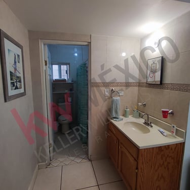 Recamara Principal en planta baja con baño vestidor, cocina, sala comedor, baño