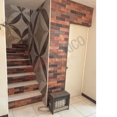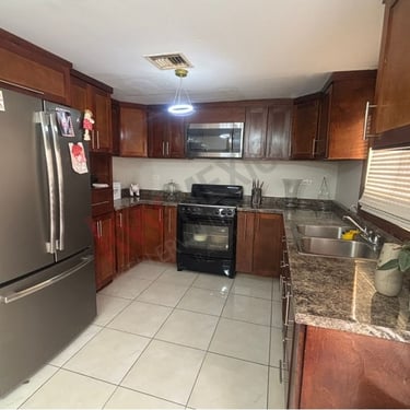 🟧EQUIPO Cocineta de madera con estufa bosch y microondas, Aire, calefacción, calentón en planta baja, instalación de gas natural y LP, focos ahorradores en toda la casa, pastillas de luz preparación de luz 229v, persianas en toda la cas, zoclo y marcos de madera en ventanas y puerta de vidrio, candiles con focos ahorradores, Escalera con candil doble y persiana shutter black out, patio encementado.