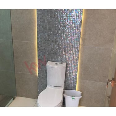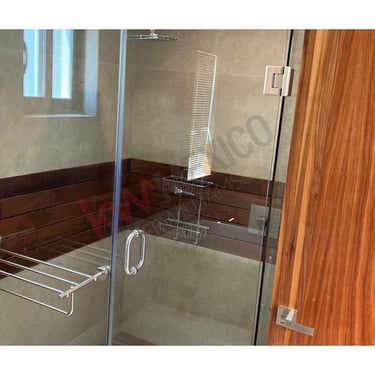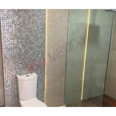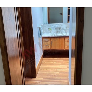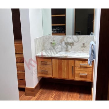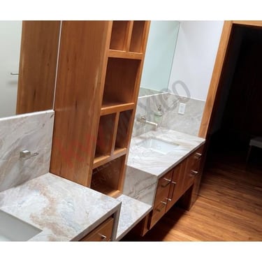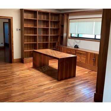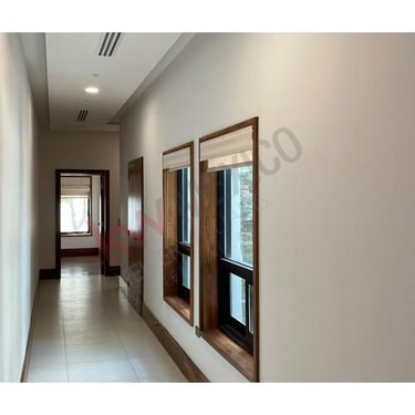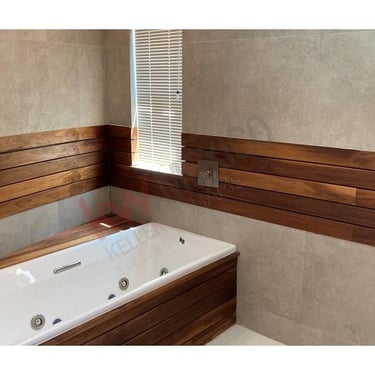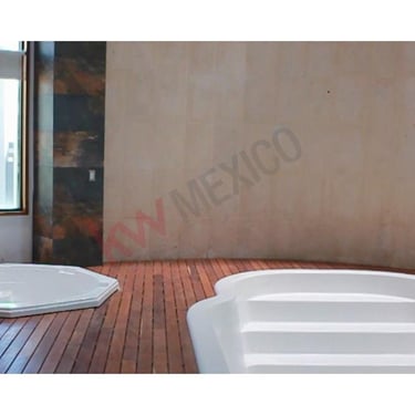 Acabados de madera teca en pisos de alberca y baños.