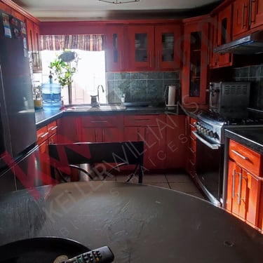 Cuatro recamaras una en planta baja con closet vestidor, Dos baños completos, Lavandería, Sala, Desayunador, Cocina, Cochera con portón eléctrico para un vehículo, Terraza, Estancia, Patio. Equipada con, Dos aires, calefaccion, Boiler, Cocina, Tres abanicos de techo, Tres minisplit, Dos calentones, Portón eléctrico, Servicio de gas natural.